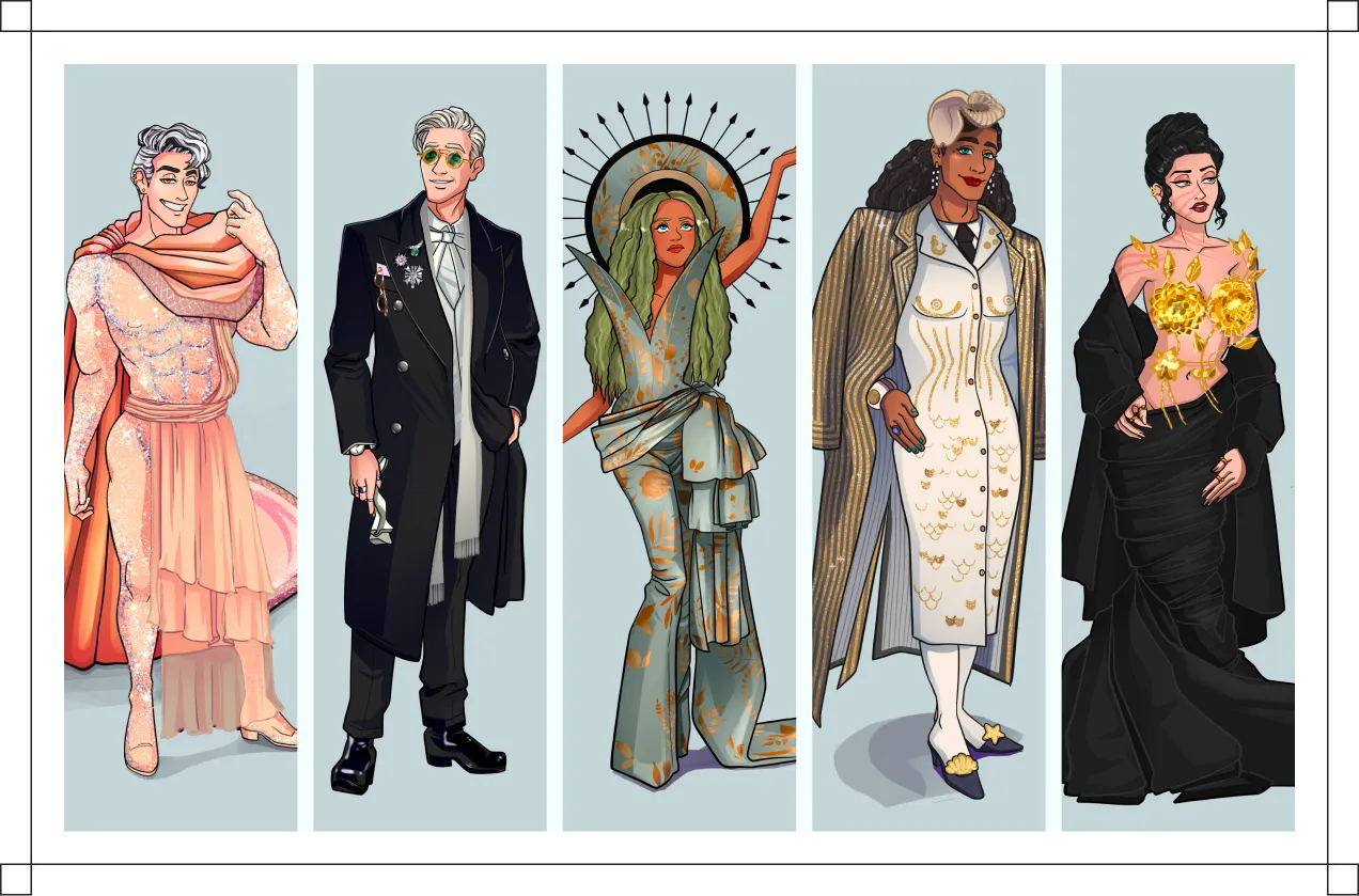 Inspired by the 2024 Met Gala, themed The Garden of Time, I used this project as a study in fabric, texture, and form. My focus was on developing visual shorthand for challenging materials and experimenting with efficiency in illustration. Rather than rendering portraits, I reinterpreted the looks on my own original characters, allowing me to merge fashion study with personal storytelling.